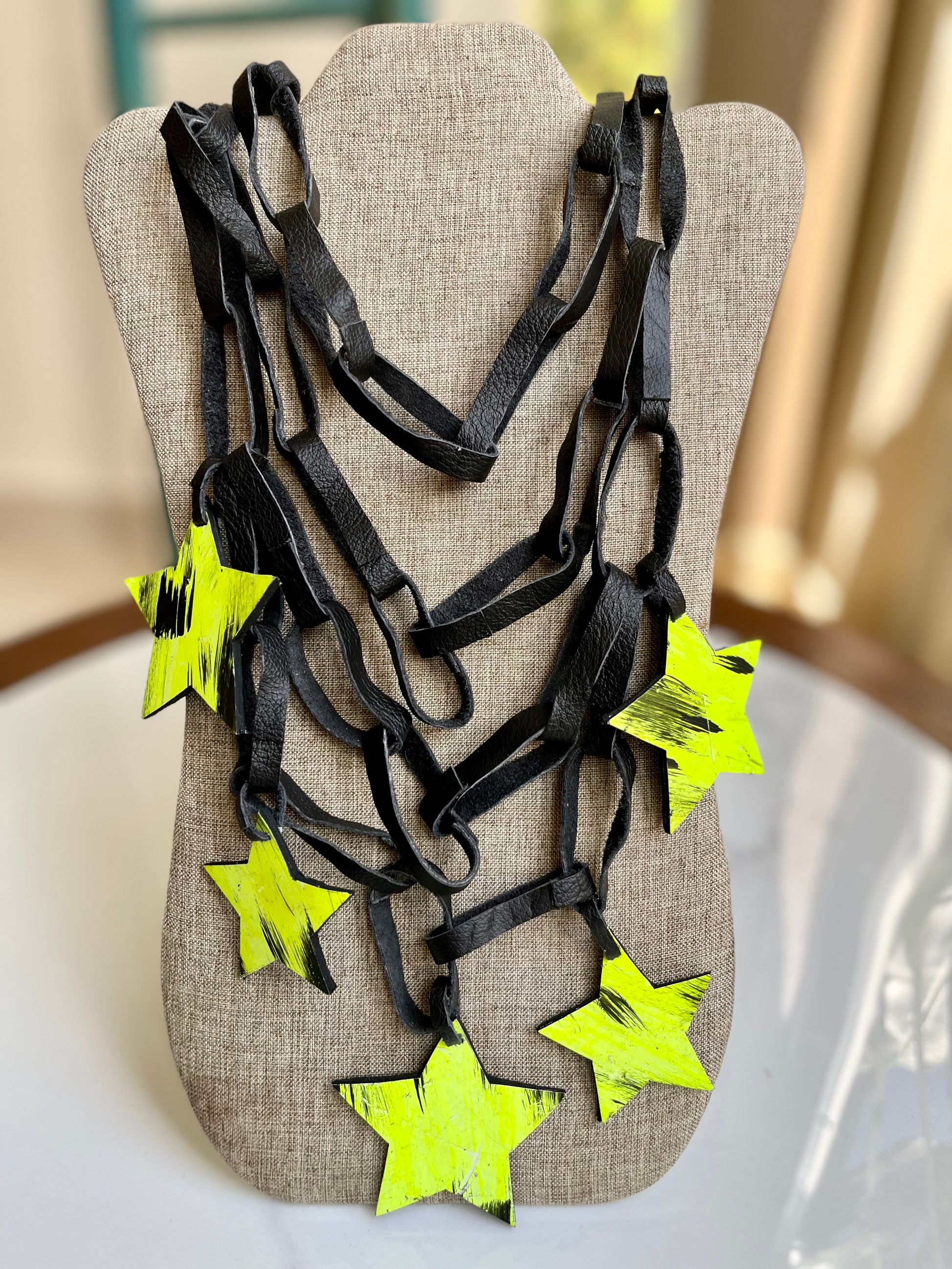 Arlenne Diaz Leather Neon Star Necklace